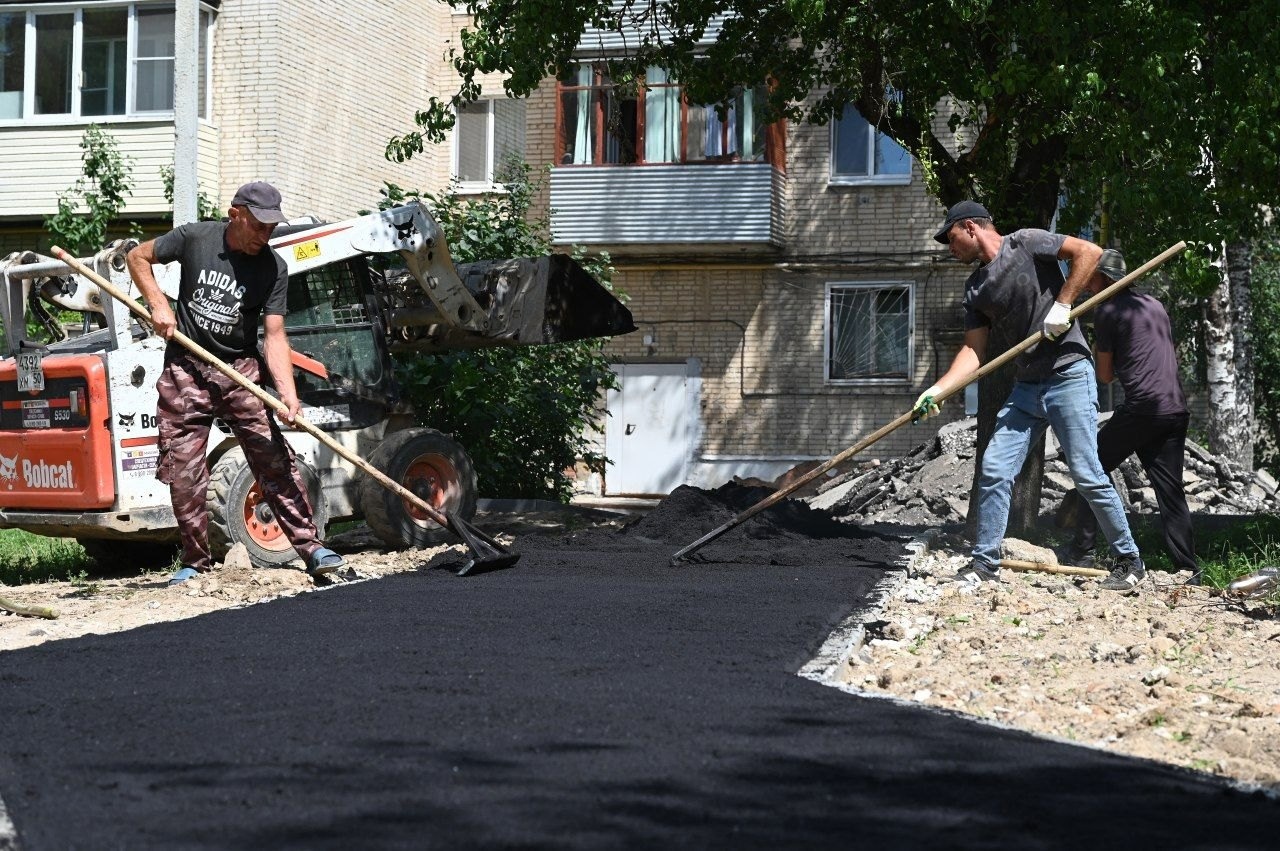 Подрядчик приступил к укладке асфальтобетонного покрытия. Дальше приступят к парковочным пространствам и внутридворовым проездам.